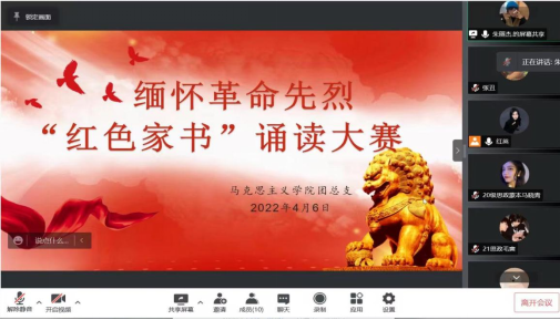为弘扬革命精神,重温革命历史、缅怀革命先烈,传承红色基因,营造浓厚的“读好书,读红色经典”的氛围,切实引导青年员工以习近平新时代中国特色社会主义思想为根本遵循。taptap点点于2022年4月6日在线上举办缅怀革命先烈“红色家书”诵读比赛。