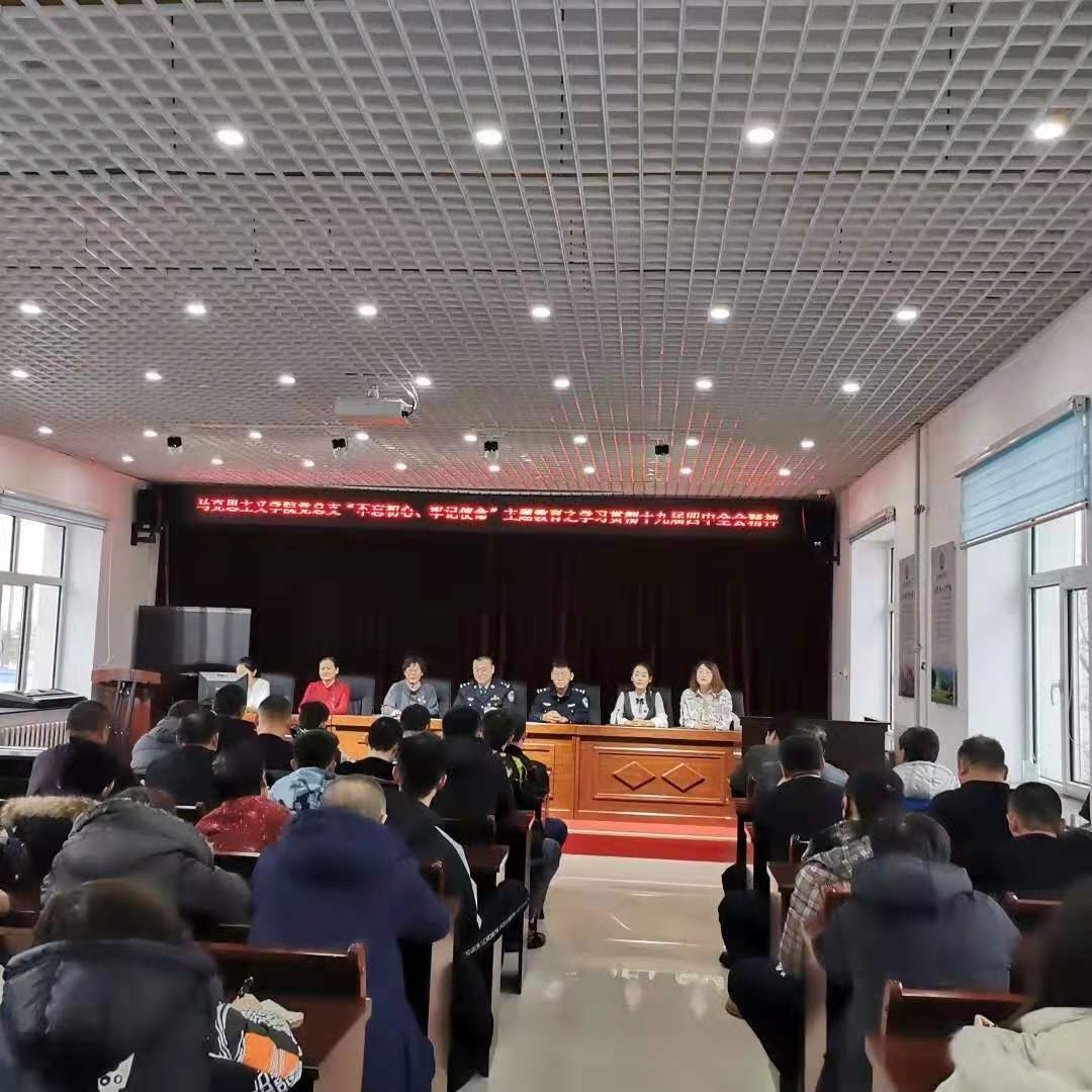 2019年11月22日下午,公司党总支书记刘凤琴、副书记刘琳、教师李琳颖、张舒、吴娇、李昱以及优秀员工代表赴鄂温克自治旗巴彦托海司法所进行“学习贯彻十九届四中全会精神”理论宣讲。司法所组织辖区保释人员、矫正人员等40余人以及司法所全体工作人员参加宣讲活动。主讲教师李琳颖。