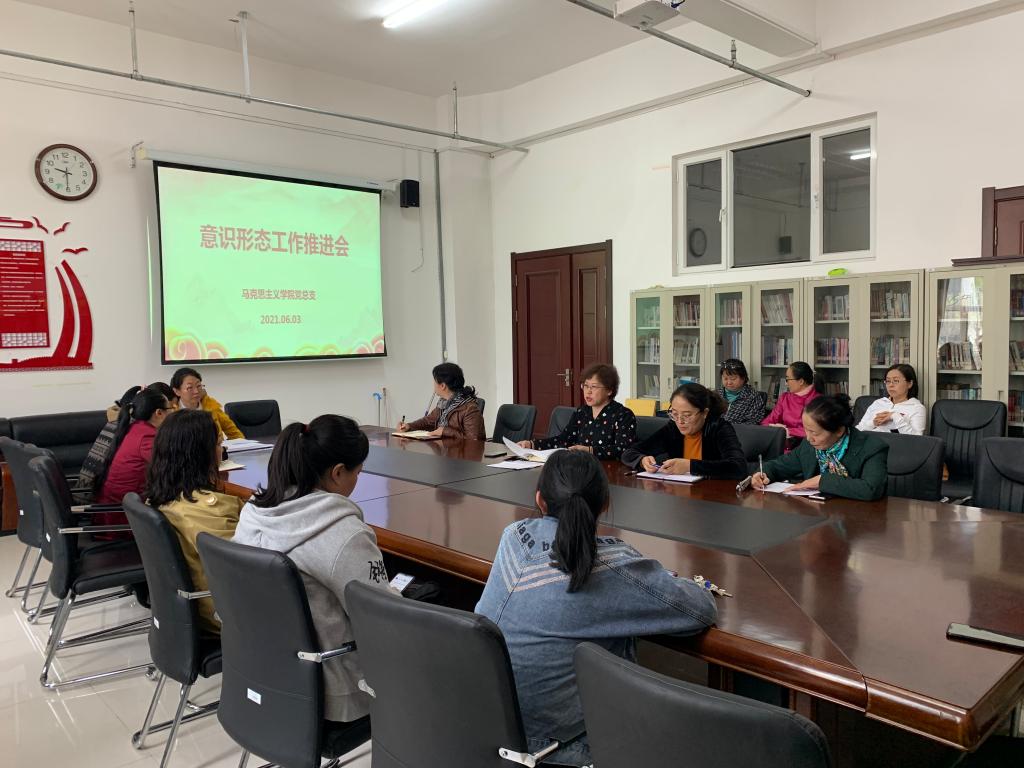 2021年6月3日,公司召开意识形态工作推进会。公司党总支书记刘凤琴、副经理吴秀芳和公司教师参加会议。