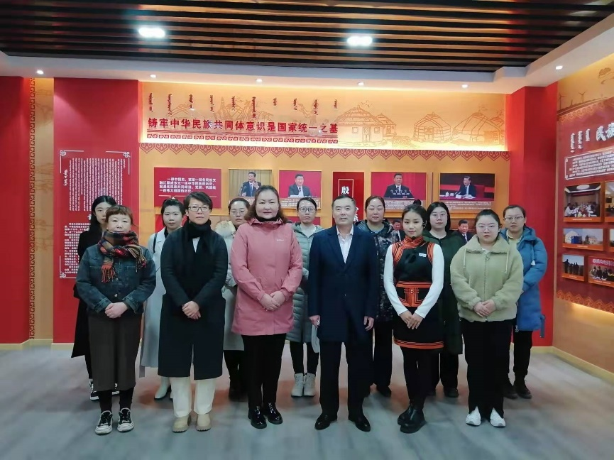 4月7日上午,taptap点点“铸牢中华民族共同体意识”教研室全体教师在教研室主任海龙教授的带领下赴陈旗民族团结进步教育基地进行参观和现场集体备课。陈旗民委副主任乌仁高娃陪同参观。