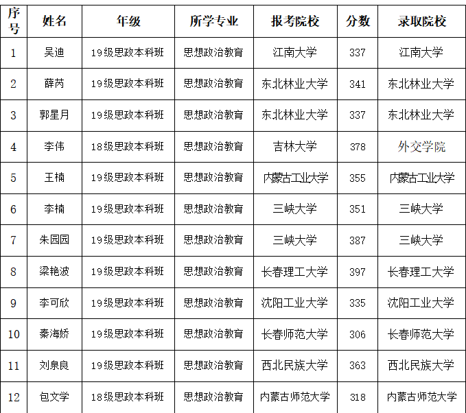 2023研究生考试再创佳绩,公司报名参加硕士研究生考试33人,达国家线14人,目前12人已被录取。具体情况如下: