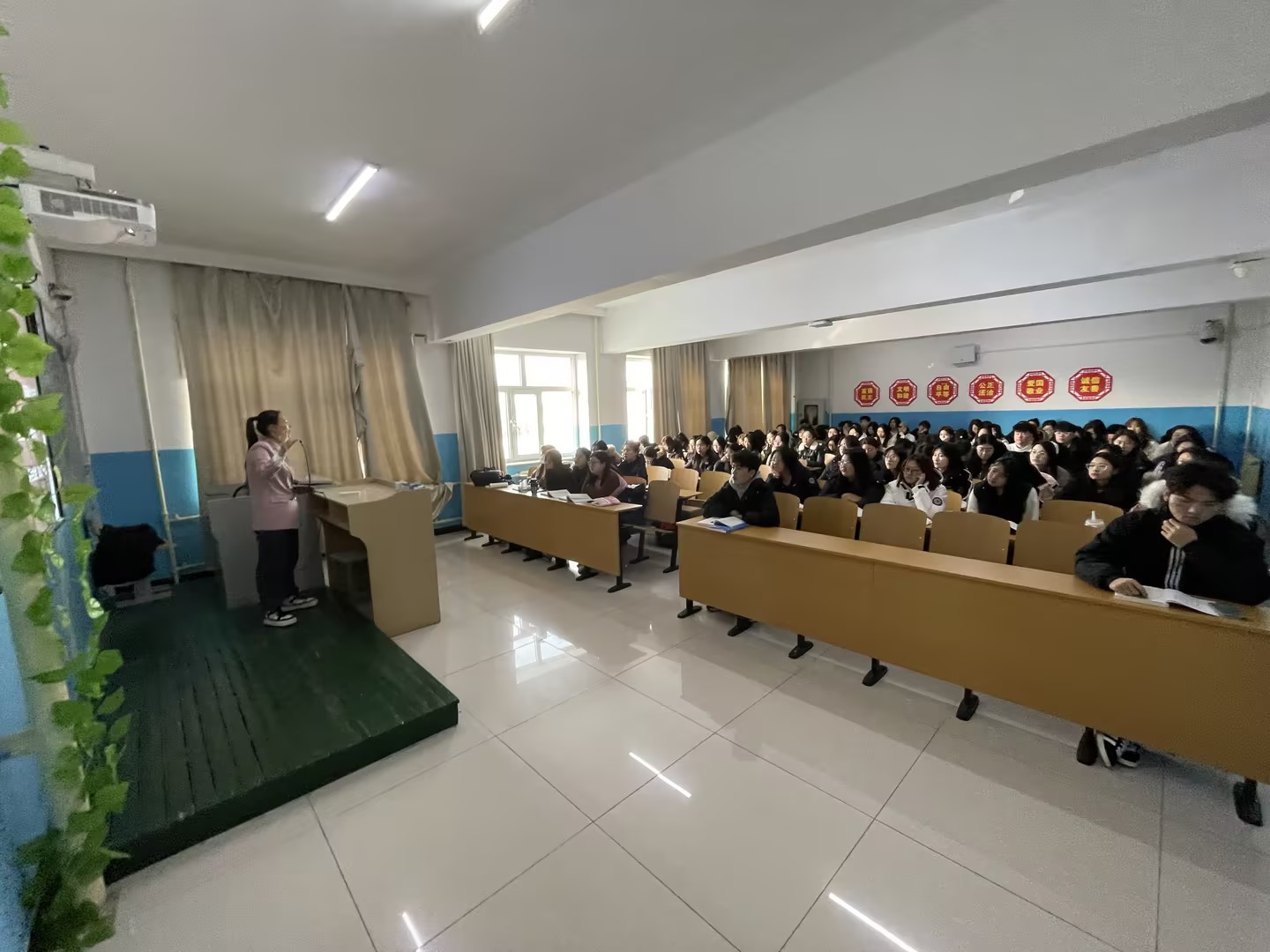 课上,公司教师李凌敏讲授了《习近平新时代中国特色社会主义思想概论》课程。课程围绕新时代是什么样的和进入新时代的依据是什么进行了深入浅出的讲解。在听课过程中,尹立军仔细观察员工们的学习状态,认真记录课堂授课情况。员工精神饱满,教师备课充分,教学秩序井然。