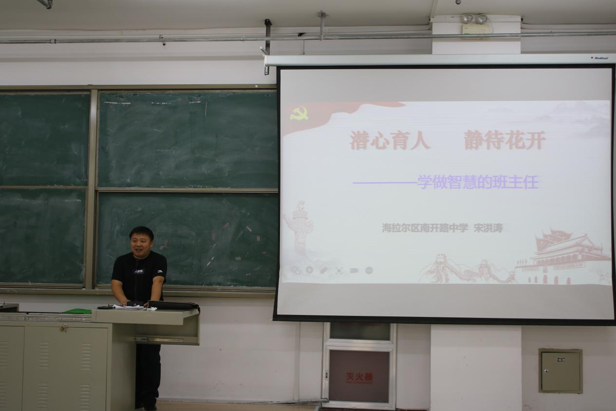宋洪涛从教育理念、学情分析、教育策略三个方面为同学们详细介绍了班级管理和班主任工作。他强调班主任在日常工作中要尊重员工的成长发展规律,要以培养员工的思想品德和身心健康为目的。